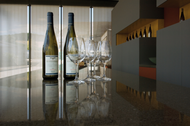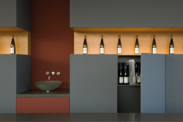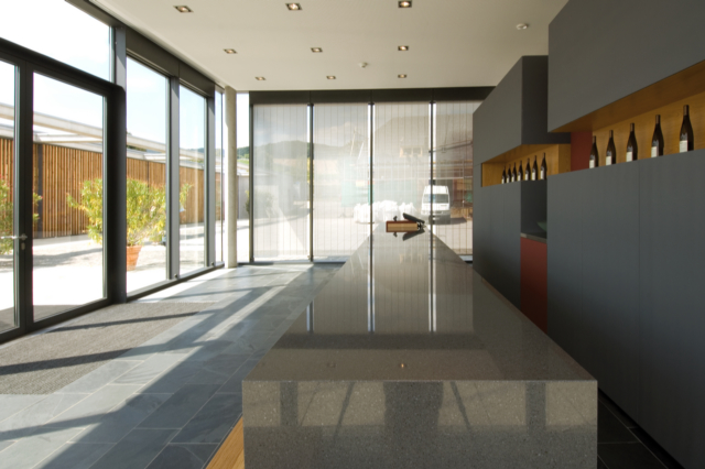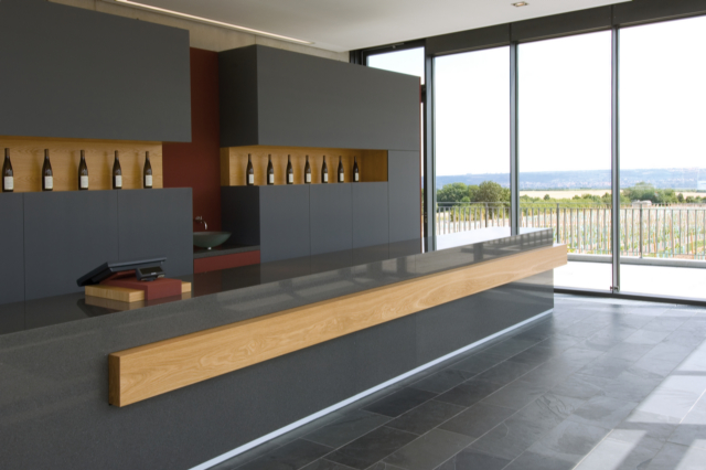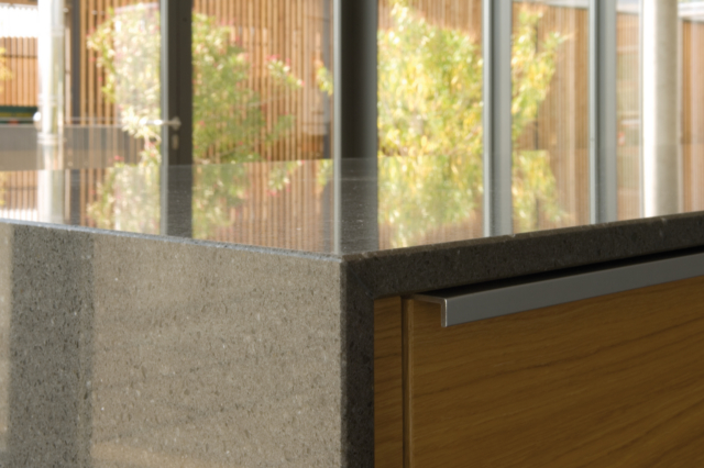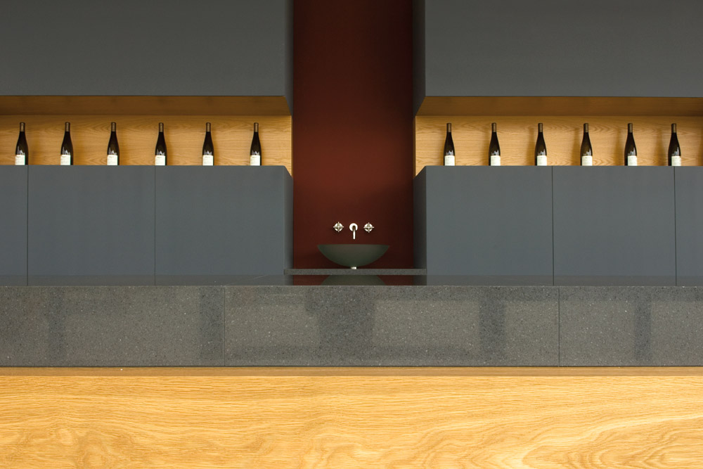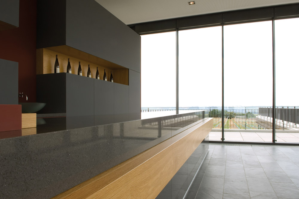 Genauso wie Wein wird gutes Design mit der Zeit immer besser. DuPont ZODIAQ Quartz Surfaces positioniert sich gekonnt neben anderen Materialien wie beispielsweise Holz, Stahl oder Glas und erfüllt in jeder Situation die geforderten ästhetischen und funktionalen Ansprüche. Hier präsentiert sich der polierte Farbton Storm Grey im selbstbewussten Miteinander mit Holz und anderen Werkstoffen.